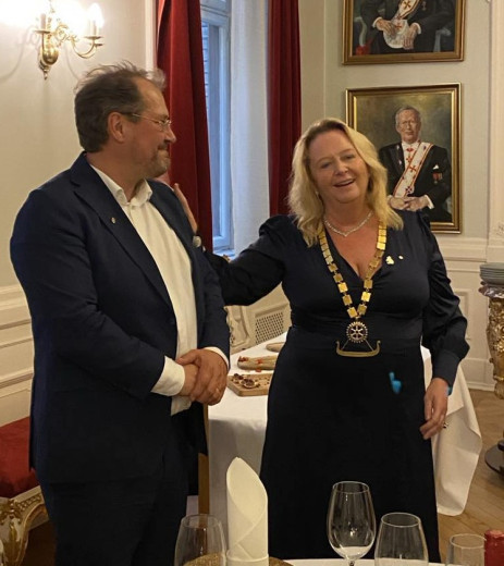 Samtidig markerte Lade Rotaryklubb overføring av presidentvervet, fra Odin Johansen til Grete Marie Selven. (bilde til høyre)