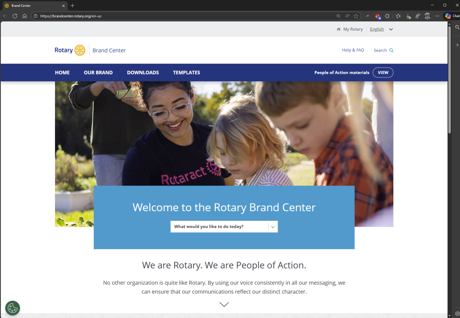 Etter at du har logget på rotary.org, velger du Brand Center. Du får spørsmål om hva du ønsker å gjøre i dag.