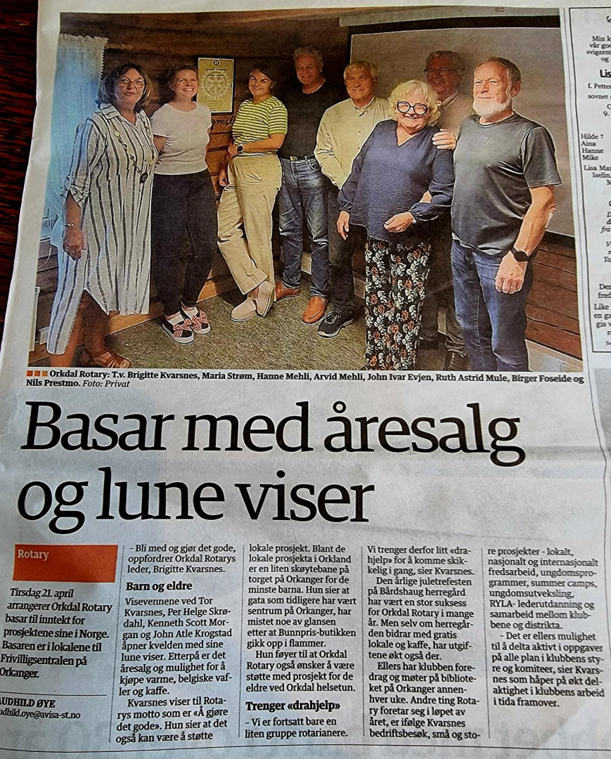 Orkdal Rotaryklubb arrangerer basar til inntekt for sine prosjekter i Norge.