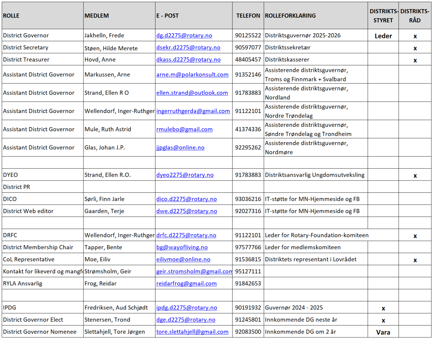 ROLLER OG KONTAKTINFORMASJON 2025-26, 01.07.2025 - 30.06.2026